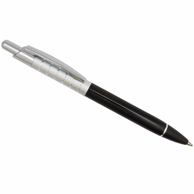 Caneta semi-metal com 6 anéis em diversas cores. Tamanho total (CxL): 14 cm x 4.5 cm Peso do produto: 17 g