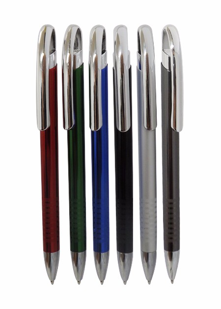 Caneta semi metal, com detalhe cromado. Medidas para gravação (CxD): 6,0 cm x 1,5 cm Tamanho total (CxD): 14,2 cm x 3,0 cm Peso do produto: 15 g