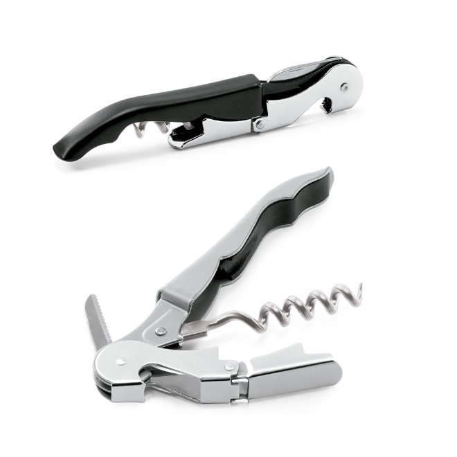 Saca-rolhas. Metal. Com abridor de garrafas e canivete de sommelier. Espiral em aço inox. 121 x 20 x 12 mm