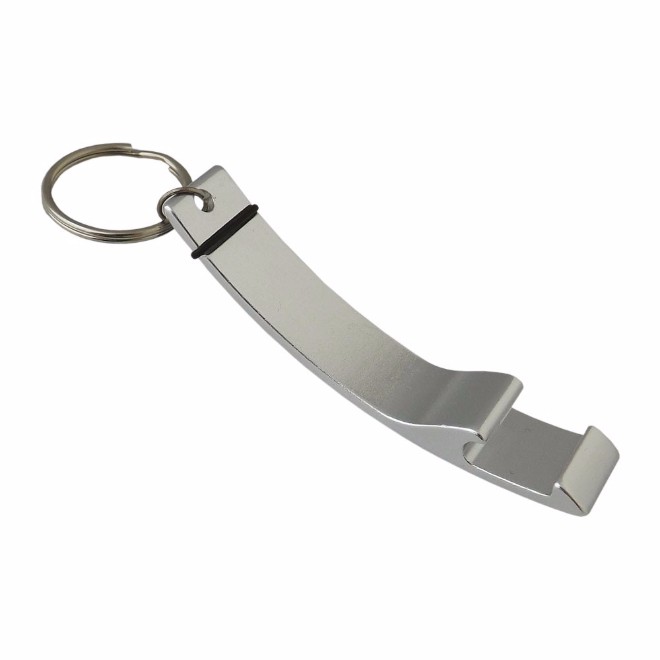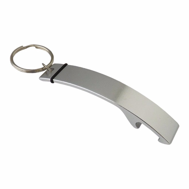 Chaveiro abridor com detalhe de borracha. Chaveiro abridor de metal na cor prata. Medidas para gravação (CxL): 7,7 cm x 1,5 cm Tamanho total (CxL): 8,3 cm x 1,5 cm Peso do produto: 10 g
