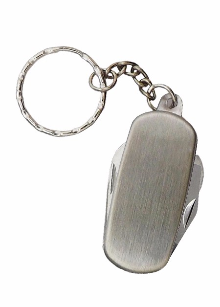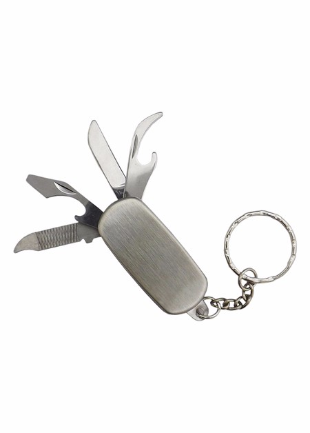 Chaveiro canivete com 4 funções, material de metal. Medidas para gravação (CxL): 4,5 cm x 1,9 cm Tamanho total (CxL): 4,5 cm x 2,9 cm Peso do produto: 29 g