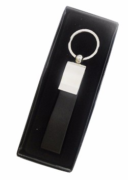 Chaveiro com alça de couro sintético. Medidas pra gravação (CxL): 3,2 cm x 1,7 cm Tamanho total (CxL): 9,5 cm x 1,8 cm Peso do produto: 29 g