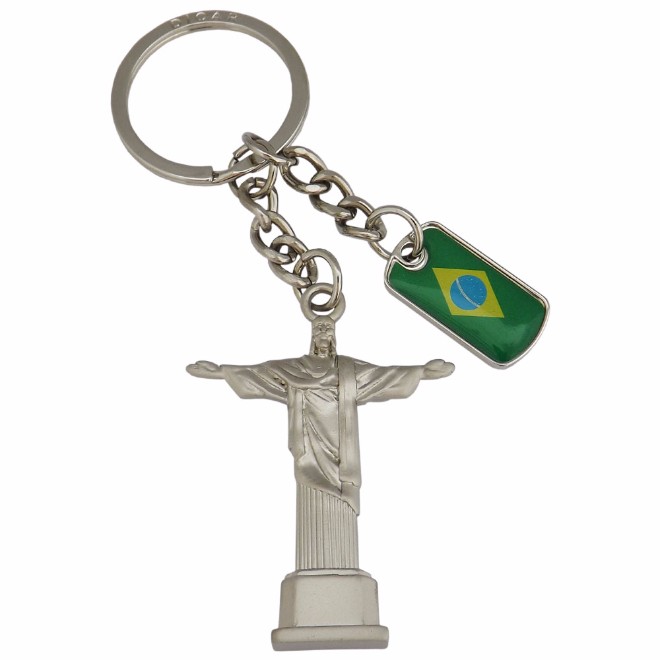 Chaveiro Cristo Redentor e Bandeira do Brasil Material - Metal. Cor - Prata e a bandeira verde, amarela e azul. Tamanho - 5.1cm x 4.1cm Peso - 29gr
