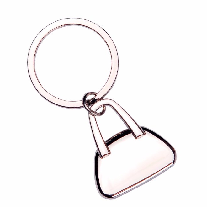 Chaveiro de metal brilhante, no formato de bolsa. Medidas para gravação (CxL): 1,8 cm x 2,8 cm Tamanho total (CxL): 7,0 cm x 3,3 cm Peso do produto: 34 g Peso do produto na embalagem: 45 g