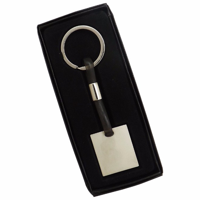 Chaveiro de metal com cordão emborrachado. Medidas para gravação (CxL): 2,5 cm x 2,6 cm Tamanho total (CxL): 10,0 cm x 3,0 cm Peso do produto: 25 g Peso do produto na embalagem: 37 g