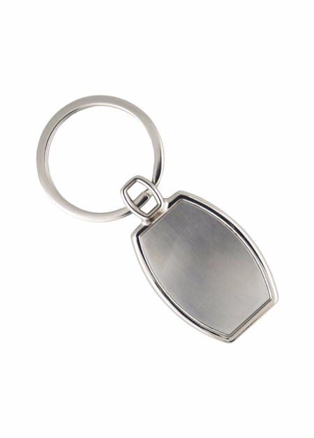 Chaveiro de metal, com detalhe na cor prata escovado nas duas faces.