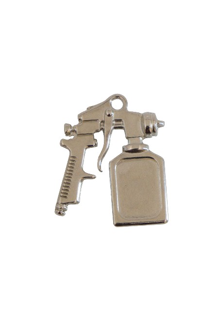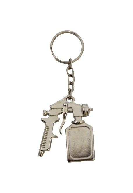 Chaveiro de metal, em forma de pistola de pintura. Tamanho total do produto: (CxL) 5,0cm X 4,2cm Peso total do produto: 17g