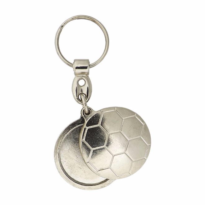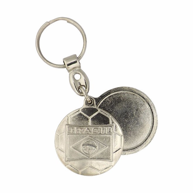 Chaveiro de metal em formato de 2 bolas cortadas.Disponibilidade para gravação na parte detrás.
