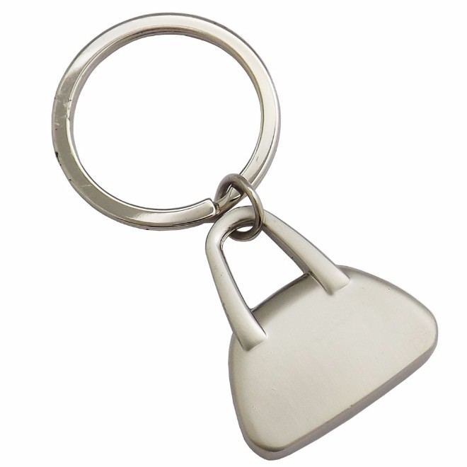 Chaveiro de metal fosco, no formato de bolsa. Medidas para gravação (CxL): 2,0 cm x 3,0 cm Tamanho total (CxL): 3,5 cm x 3,0 cm Peso do produto : 34 g