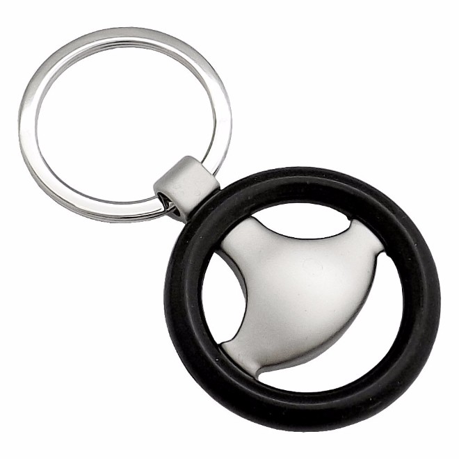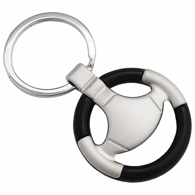 Chaveiro de metal fosco, no formato de volante. Medidas para gravação (CxL): 2,3 cm x 3,1 cm Tamanho total (CxL): 5,1 cm x 4,4 cm Peso do produto: 30 g