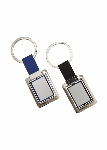 Chaveiro de Metal Quadrado Giratório com meio de plástico. Medida Total: 8.2 x 3.1 Peso total: 22 g