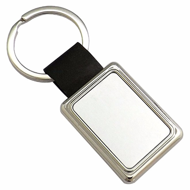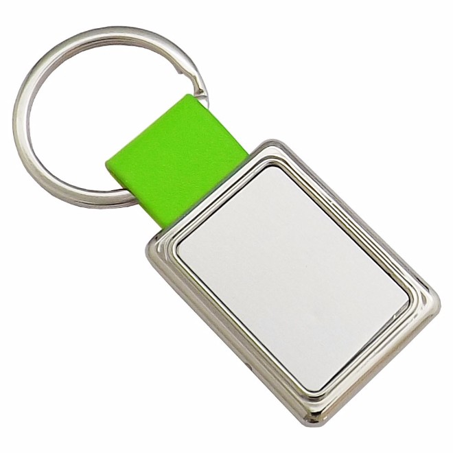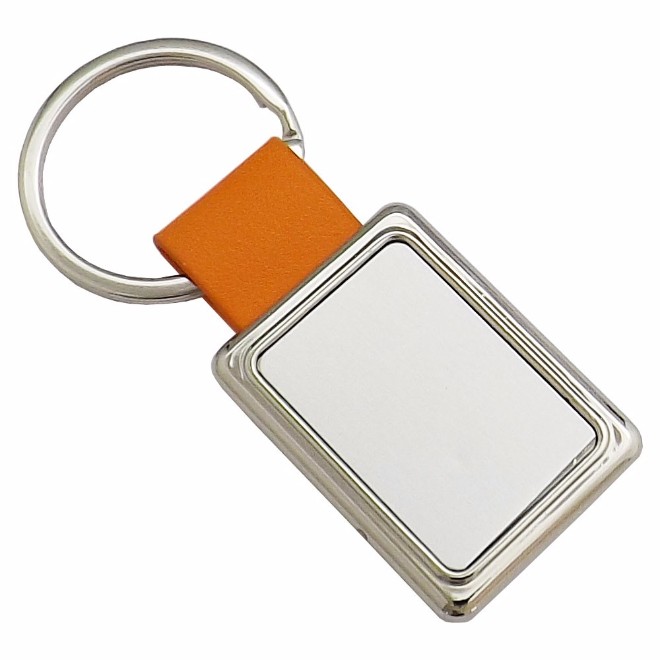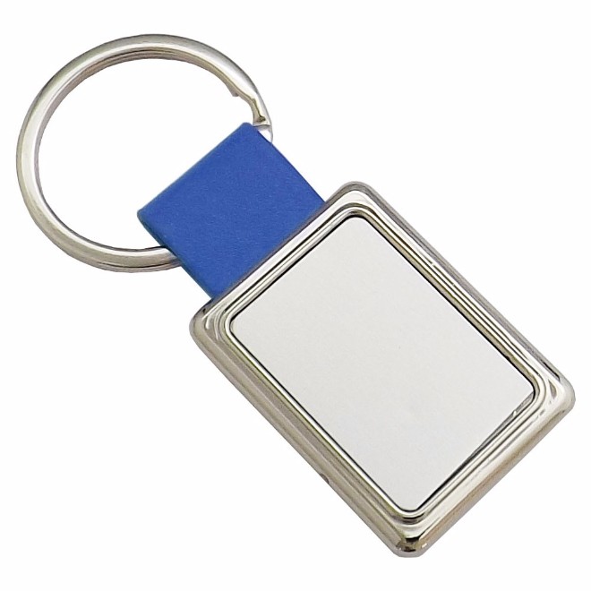 Chaveiro de metal retangular, detalhe colorido em couro sintético. Medidas para gravação (CxL): 3,2 cm x 2,1 cm Tamanho total (CxL): 7,8 cm x 2,9 cm Peso do produto: 21 g Peso do produto na embalagem: 23 g
