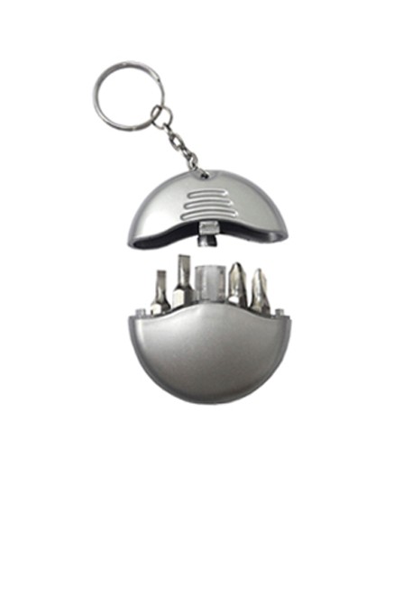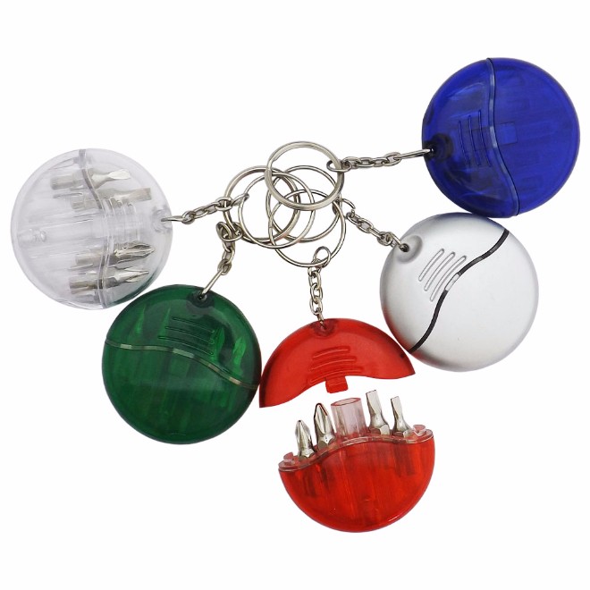 Chaveiro kit ferramenta com 4 peças, material plástico resistente. Medidas para gravação (CxL): 2,7 cm x 4,5 cm Tamanho total (C): 6,0 cm Peso do produto: 36 g