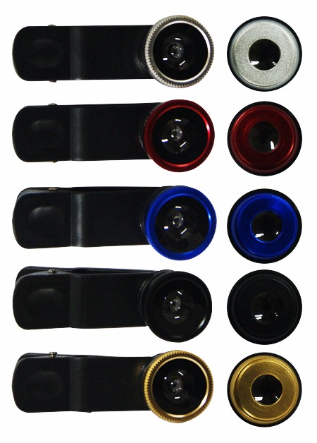 Contém uma lente Macro, uma Fish eye e Wide Angle.