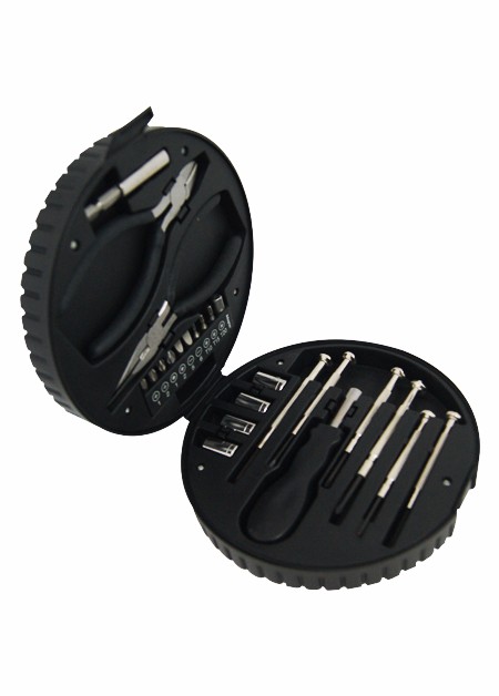 Conjunto de Ferramenta com estojo em formato de roda na Cor PRE/CIN