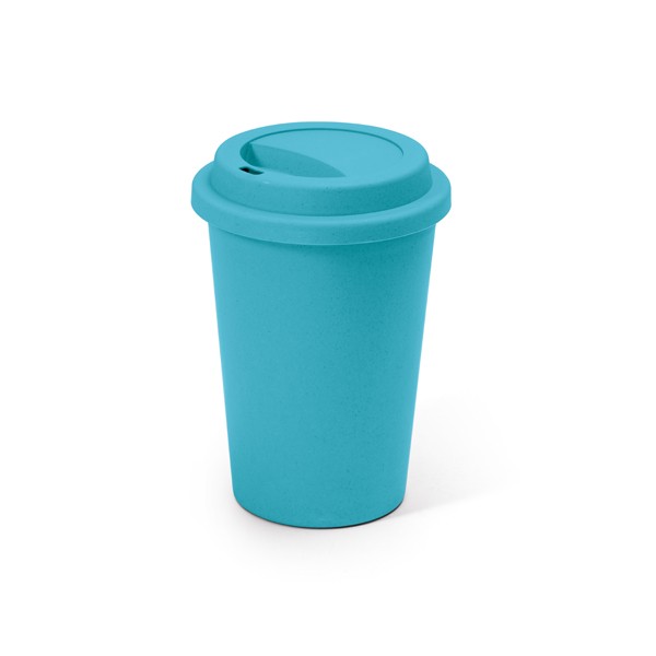 Copo para viagem. Fibra de bambu e PP. Com tampa. Capacidade até 450 ml. Food grade. ø93 x 134 mm