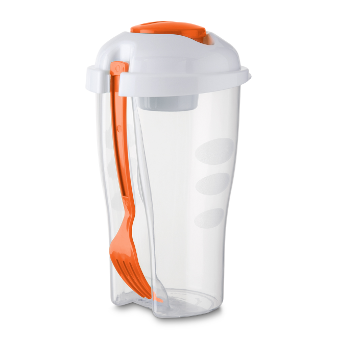 COPO Copo plástico 800 ml para salada com recipiente para molho e garfo, plástico utilizado PS (Policarbonato).