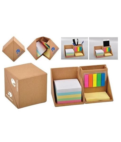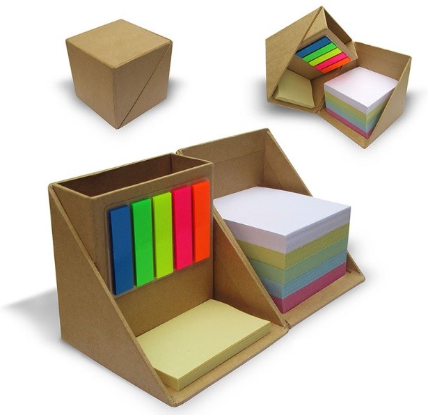 CUBO Ecológico. * Caneta esferográfica * Clips * Bloco de anotações com folhas brancas. Tamanho total do produto: (CxL) 9,5cm X 9,5cm Peso total do produto: 408,0g