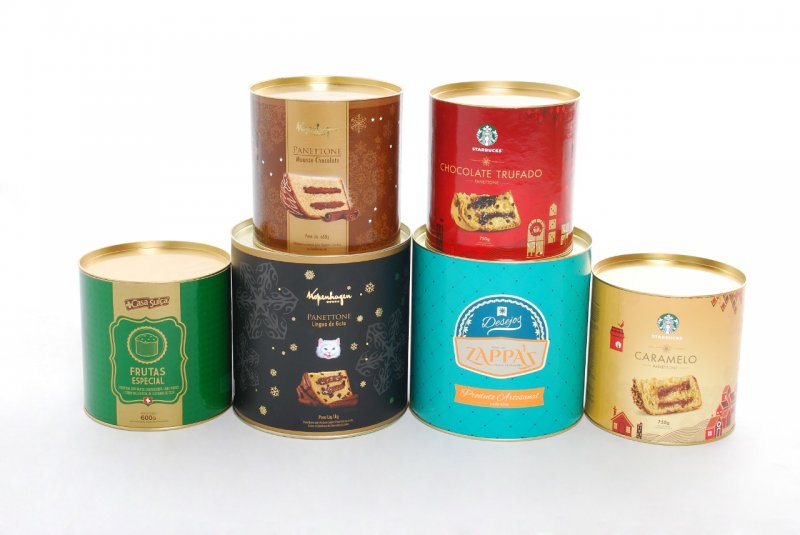 EMBALAGENS PARA PRODUTOS: FUNDO E TAMPA DE METAL CORPO DA EMBALAGEM PAPEL. IMPRESSÃO COLORIDA