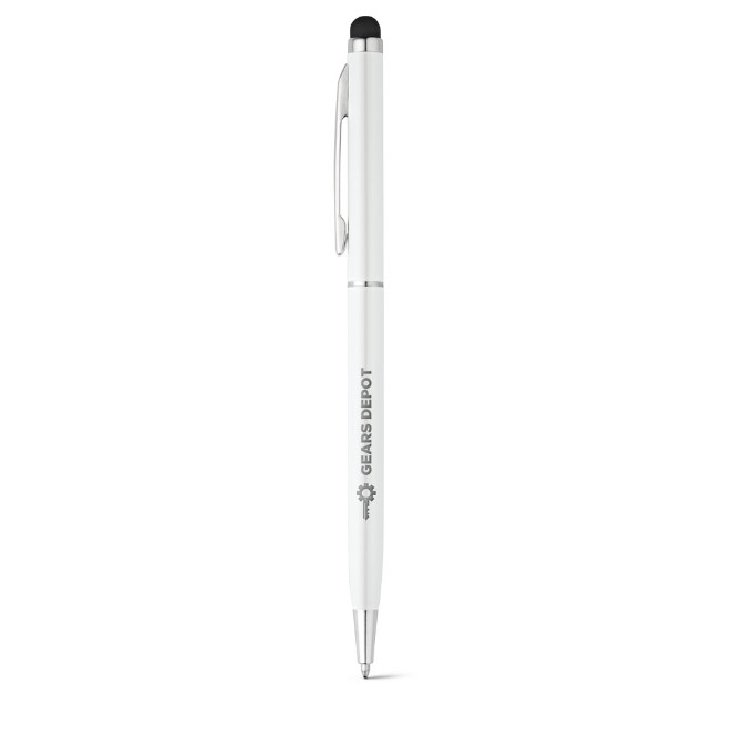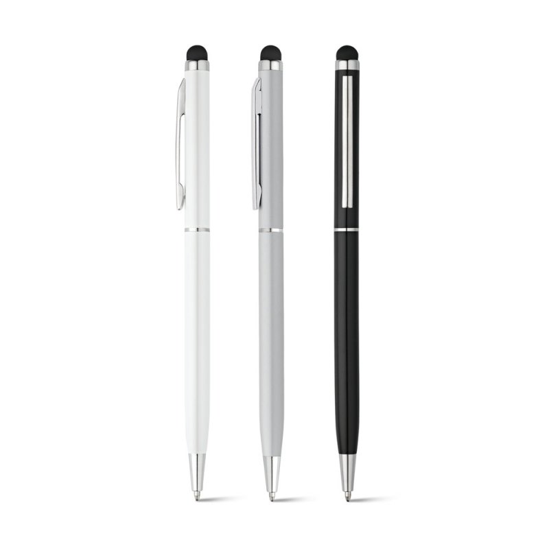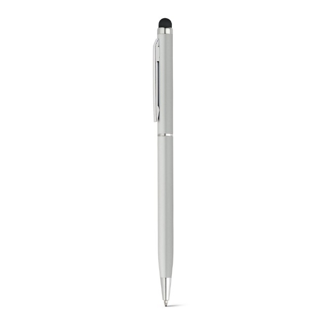 Esferográfica em alumínio com mecanismo twist, clipe e ponteira touch. ø8 x 135 mm
