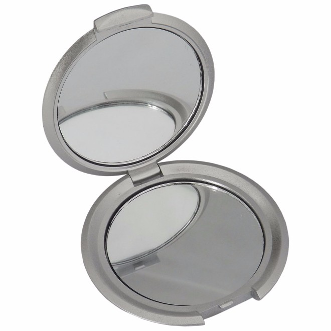 Espelho de bolso duplo, material de plástico. Tamanho total (C): 7,3 cm Peso do produto: 37 g