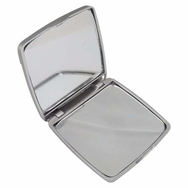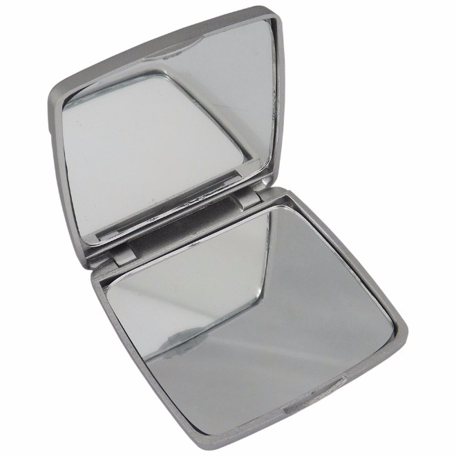 Espelho de bolso duplo, material em plástico resistente. Medidas para gravação (CxL): 5,0 cm x 6,3 cm Tamanho total (CxL): 6,3 cm x 6,5 cm Peso do produto: 43 g