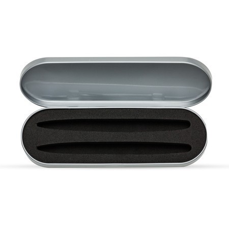 Estojo para 2 canetas, material de metal. Medidas para gravação (CxL): 18,0 cm x 6,0 cm Tamanho total (CxLxE): 18,0 cm x 6,0 cm x 1,5 cm Peso do produto: 54 g