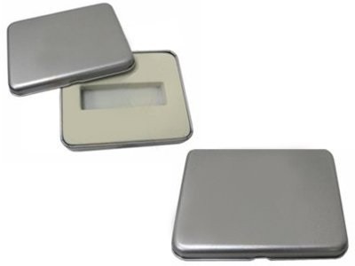 Estojo para pen drive, material de metal. Tamanho total (CxL): 10,0 cm x 8,0 cm Peso do produto: 56 g