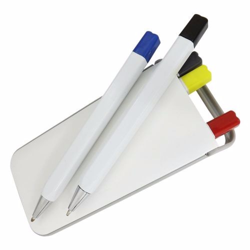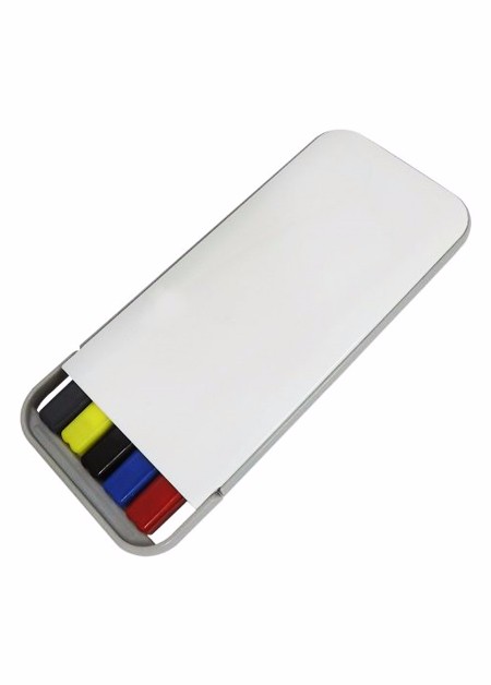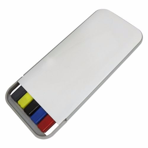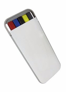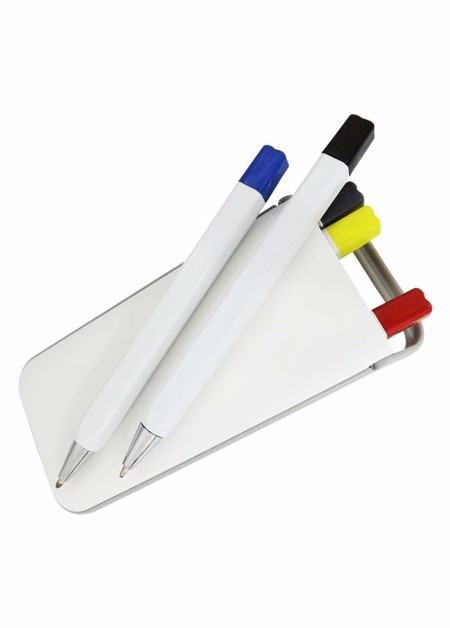 Kit 5 em 1, com caneta na cor azul, na cor preta e na cor vermelha, marca texto na cor amarela e lapiseira (grafite 0.5), com estojo de plástico.