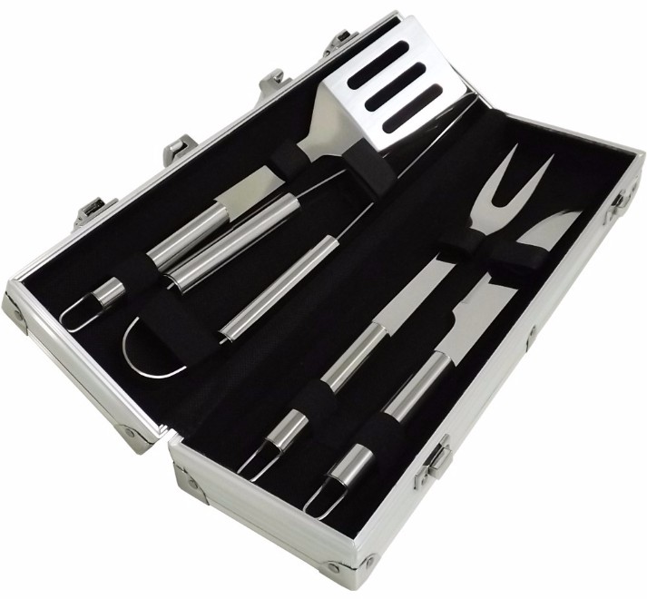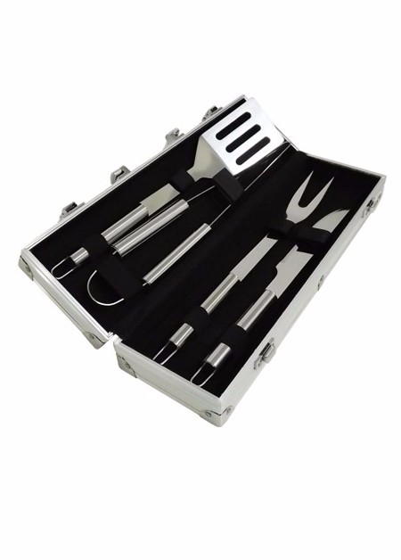Kit churrasco com 4 peças em Inox, maleta de alumínio.