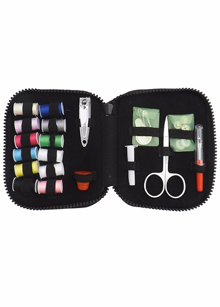 Kit Costura em estojo sintético preto. Medida total (CxL): 12.7 x 10 cm Peso total: 105 g