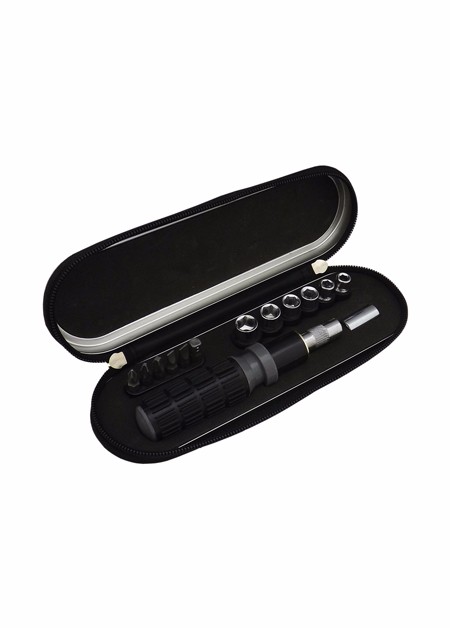 Kit ferramenta com 14 peças, material de plástico resistente e metal.