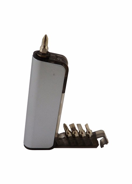 Kit ferramenta com 6 funções e lanterna, material de plástico com alumínio.
