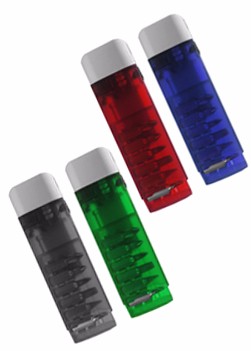 Kit ferramenta com 6 peças e lanterna. Acompanha bateria. Medidas para gravação (CxL): 7,5 cm x 1,8 cm Tamanho total (CxL): 9,8 cm x 3,2 cm Peso do produto: 56 g
