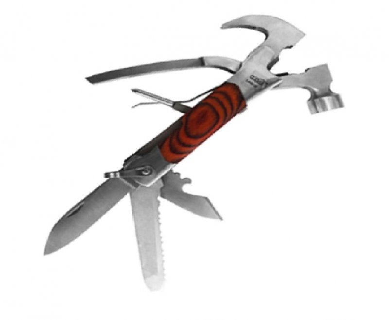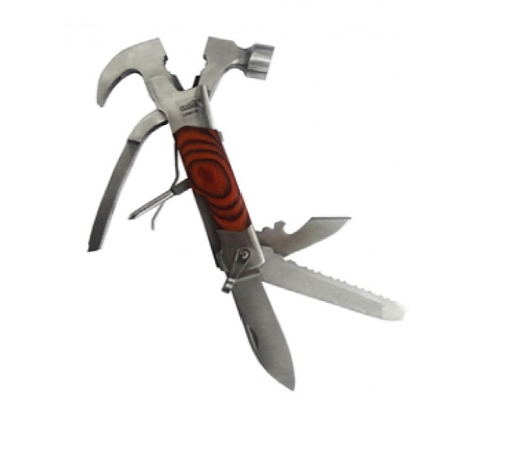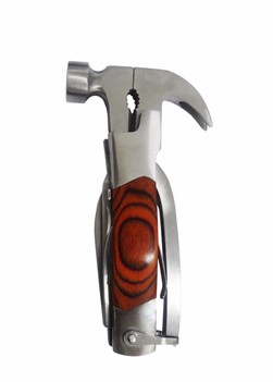 Kit Ferramenta multifunções Martelo com 6 ferramentas, detalhes de madeira no cabo. Medidas para gravação (CxL): 2,2 cm x 2,1 cm Tamanho total (CxL): 13,7 cm x 2,1 cm Peso do produto: 292 g