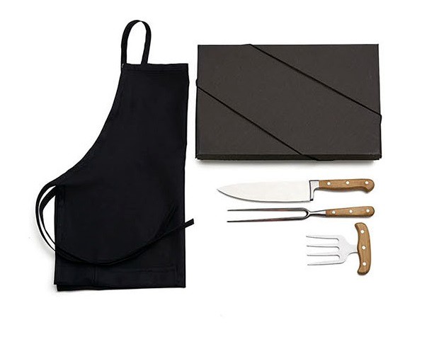 Uma gravação a Laser na lâmina da faca e no garfo de 4 dentes.