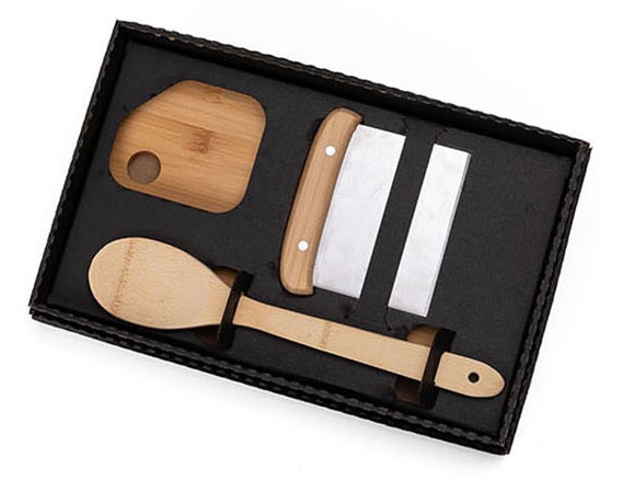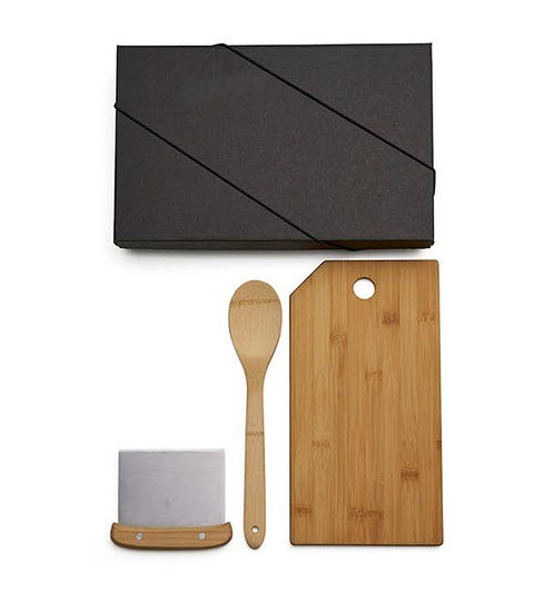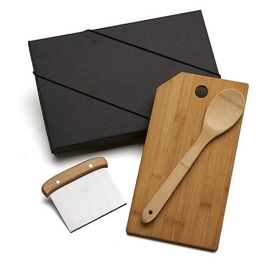 Kit Para Cozinha Em Bambu / Inox Com Espátula Multiuso - 3 Pçs.