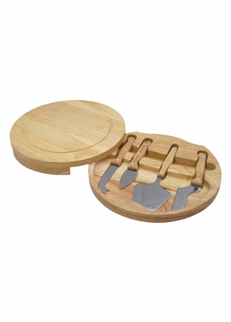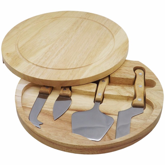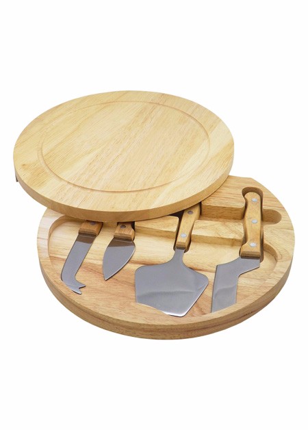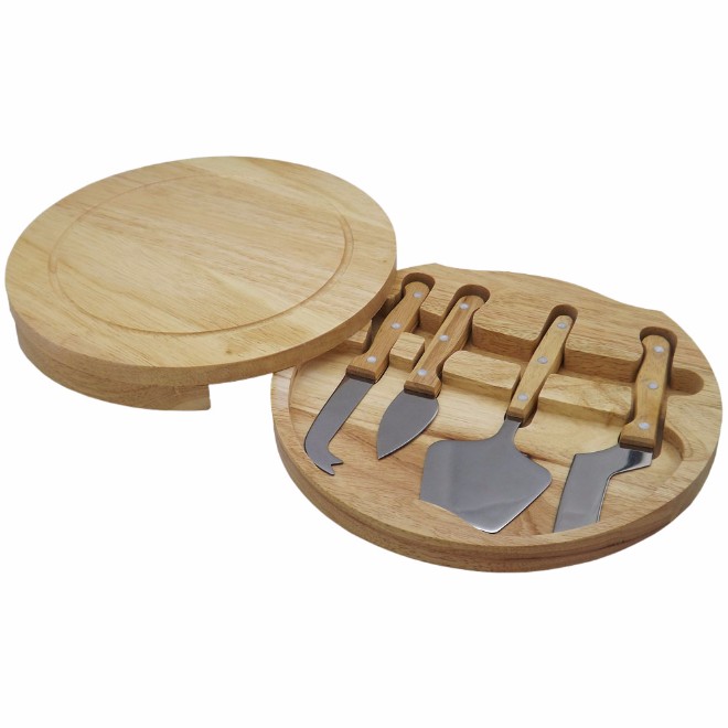 Kit queijo com 5 peças, design com borda rebaixada e tampa que abre pela lateral.
