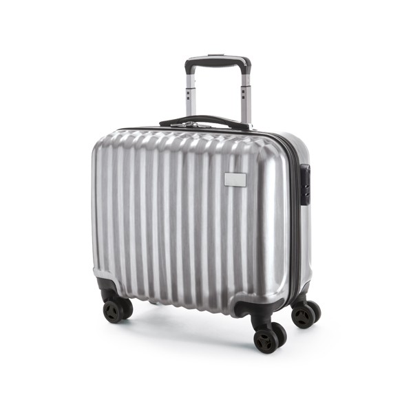 Mala para notebook. ABS e PC. Interior forrado e compartimento interior para notebook 15.6''. 4 rodas duplas giratórias. Pega extensível em alumínio, com mola (altura pega estendida: 610 mm). Fecho de segurança com senha. Placa metálica removível, para fácil gravação. Capacidade: 38 L. Peso: 2,75 kg. 440 x 430 x 240 mm | Placa: 50 x 30 mm