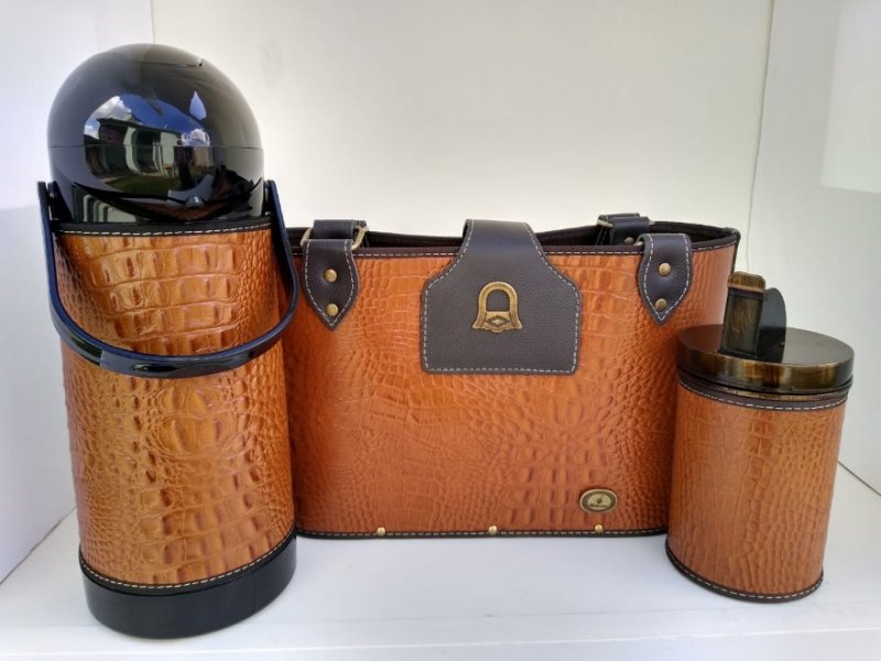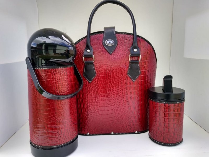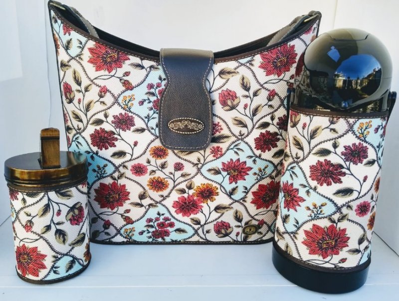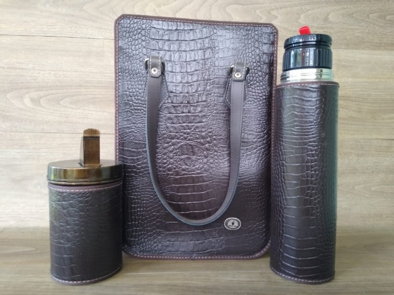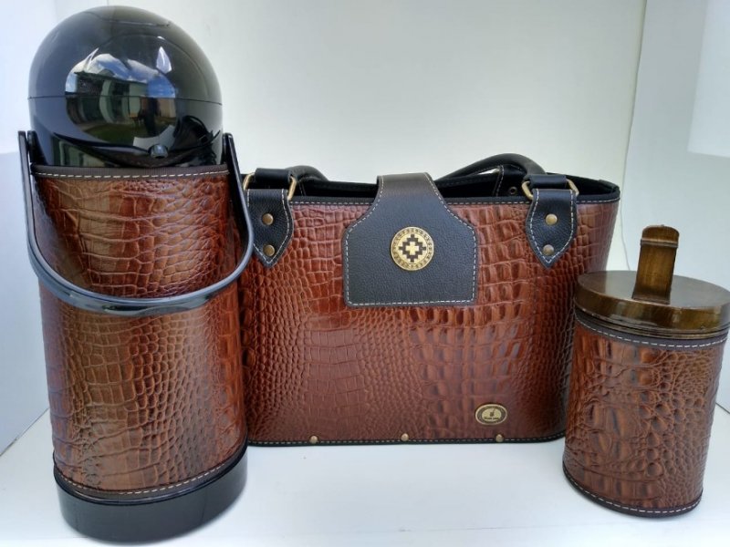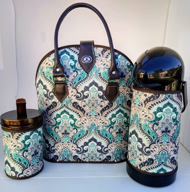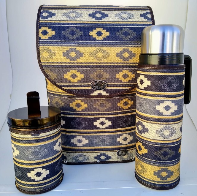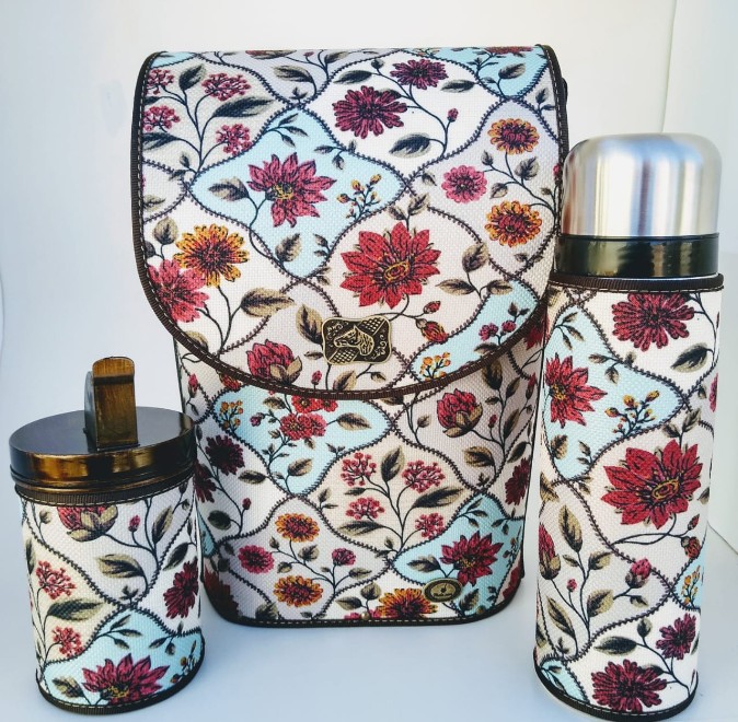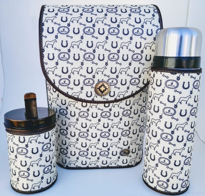 Mateira Mateira com acabamento em tecido. Acompanha porta erva e garrafa térmica de 1litro.