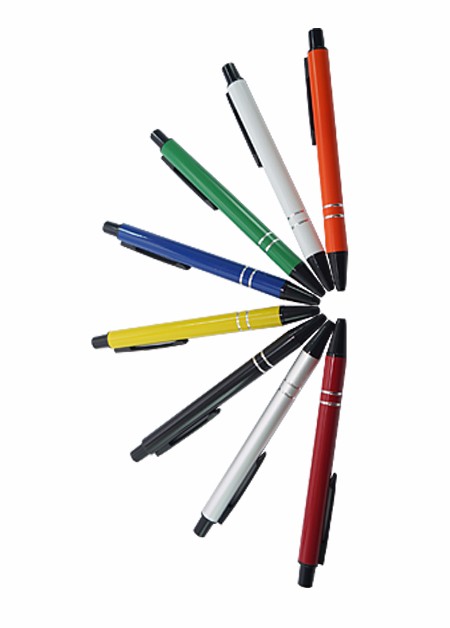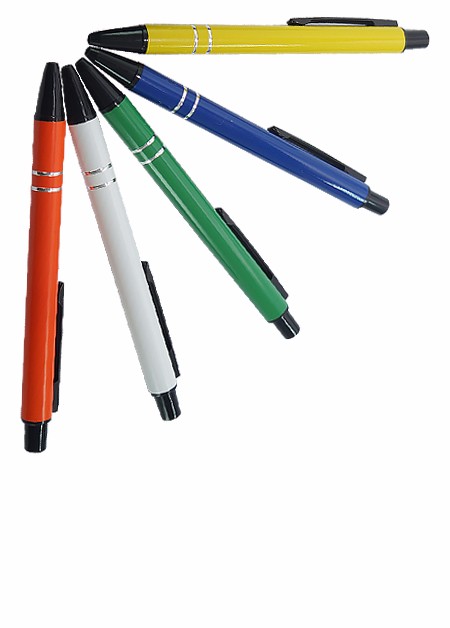 Mini caneta com 02 Aneis metalicos. Tamanho total do produto: (CxL) 11,5cm X 3,0cm Peso total dos produtos: 10,0g
