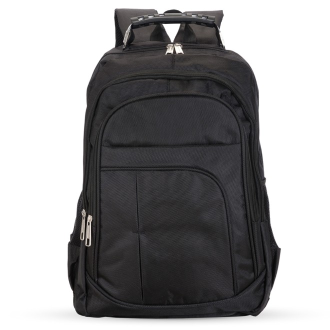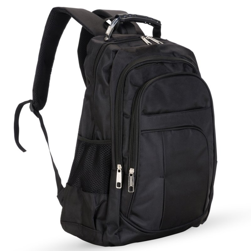 Descrição: Mochila nylon poliester para notebook. Possui compartimento grande com bolso interno para notebook até 15,6 polegadas, dois compartimentos médios, bolso pequeno frontal e bolsos laterais de rede. Zíperes prata, alça superior com pegador emborrachado e tira de silicone com cabo de aço interno para garantir maior resistência, alça superior de nylon, alças ajustáveis para as costas revestidas com espuma e parte traseira também revestida de espuma para maior conforto.