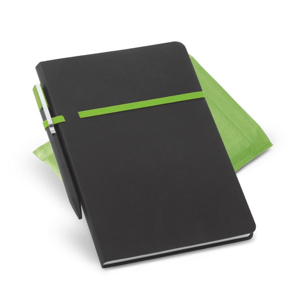 Moleskine Couro Sintético. com 96 folhas não pautadas. Fornecido em embalagem de non-woven. Incluso esferográfica. 140 x 210 mm | Embalagem: 185 x 240 mm
