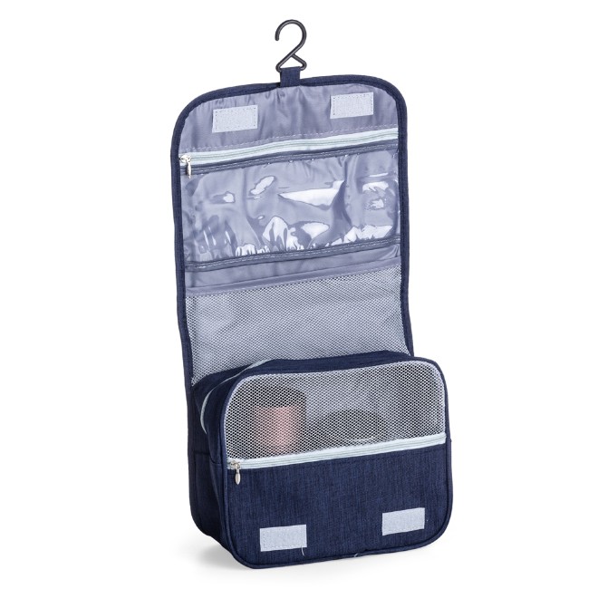 Descrição: Necessaire organizadora em tecido nylon Oxford, abertura frontal por velcro e alça superior, parte interna com gancho plástico; bolso interno superior de pvc e bolso de tela superior; dois bolsos inferiores de zíper, sendo o primeiro com detalhe superior em tela e 3 divisões internas e o segundo na parte frontal interna. Perfeita para lhe acompanhar em viagens e até mesmo transportar seus itens pessoais do dia a dia com organização e praticidade.