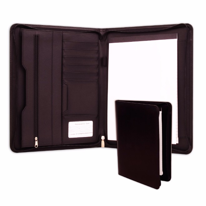 Pasta convenção, material em couro sintético. Bloco com 20 folhas (Tamanho A4 - folha pautada somente na frente, verso liso). Medidas para gavação (CxL): 29,5 cm x 19,5 cm Tamanho total (CxL): 33,5 cm x 25,5 cm Peso do produto: 680 g