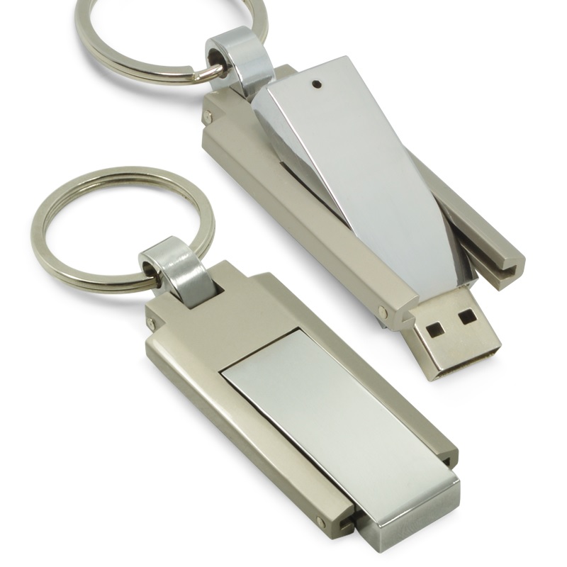 Pen drive metálico com chaveiro, capacidade 4GB. Medidas para gravação (C x L): 1,3cm x 4cm Tamanho total (C x L): 1,7cm x 4,2cm Tamanho total com o chaveiro (C x L): 1,7cm x 9,8cm Peso: 0,19g
