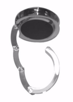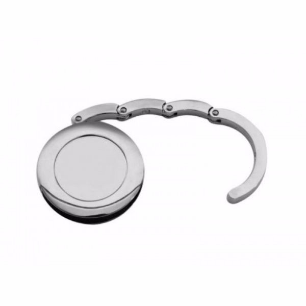 Porta bolsa de metal dobrável cromado. Medidas da base (CxL): 4,5 cm x 4,5 cm Tamanho total (C): 9,0 cm Peso do produto: 60 g