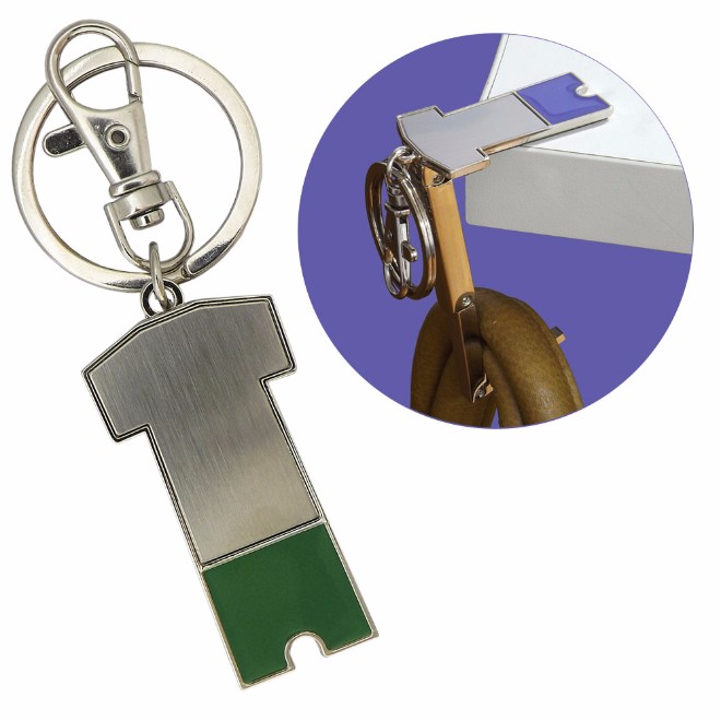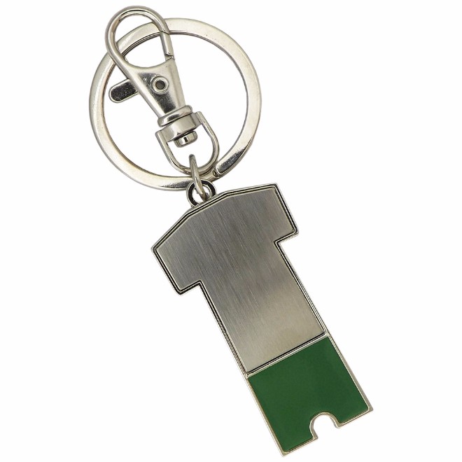 Porta bolsa em formato de uniforme de futebol, dobrável de metal.