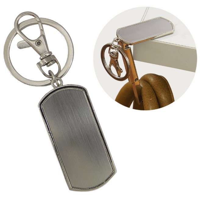 Porta Bolsa retangular de metal, com os cantos arredondados.