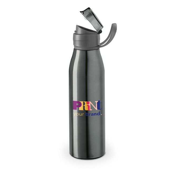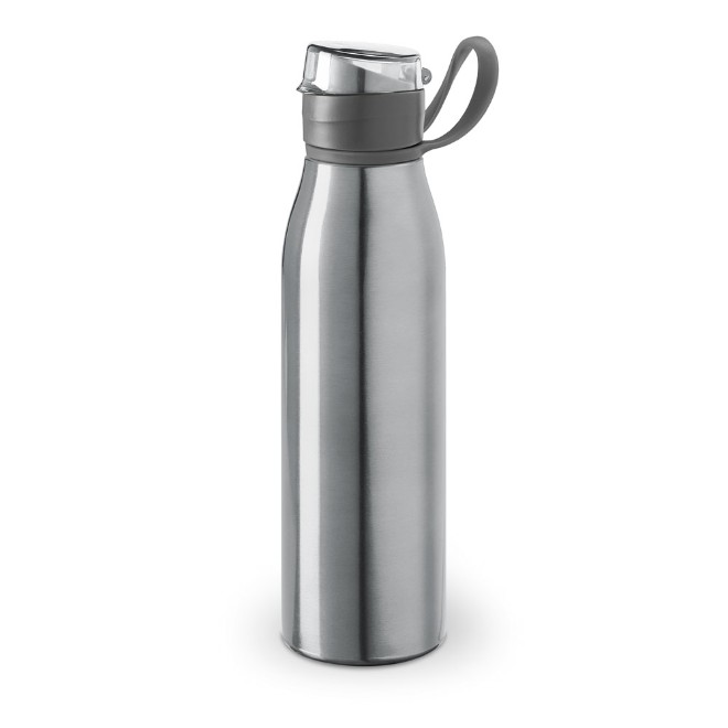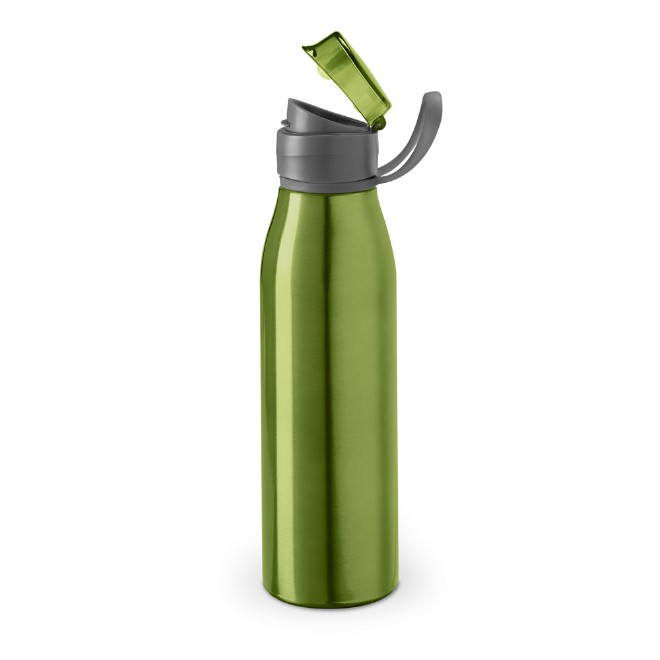 Squeeze de Alumínio com 650 ml Squeeze em alumínio e com tampa flip top em AS e alça para facilitar o transporte. Capacidade até 650 ml. Food grade. Caixa branca 94657 vendida opcionalmente. ø66 x 250 mm